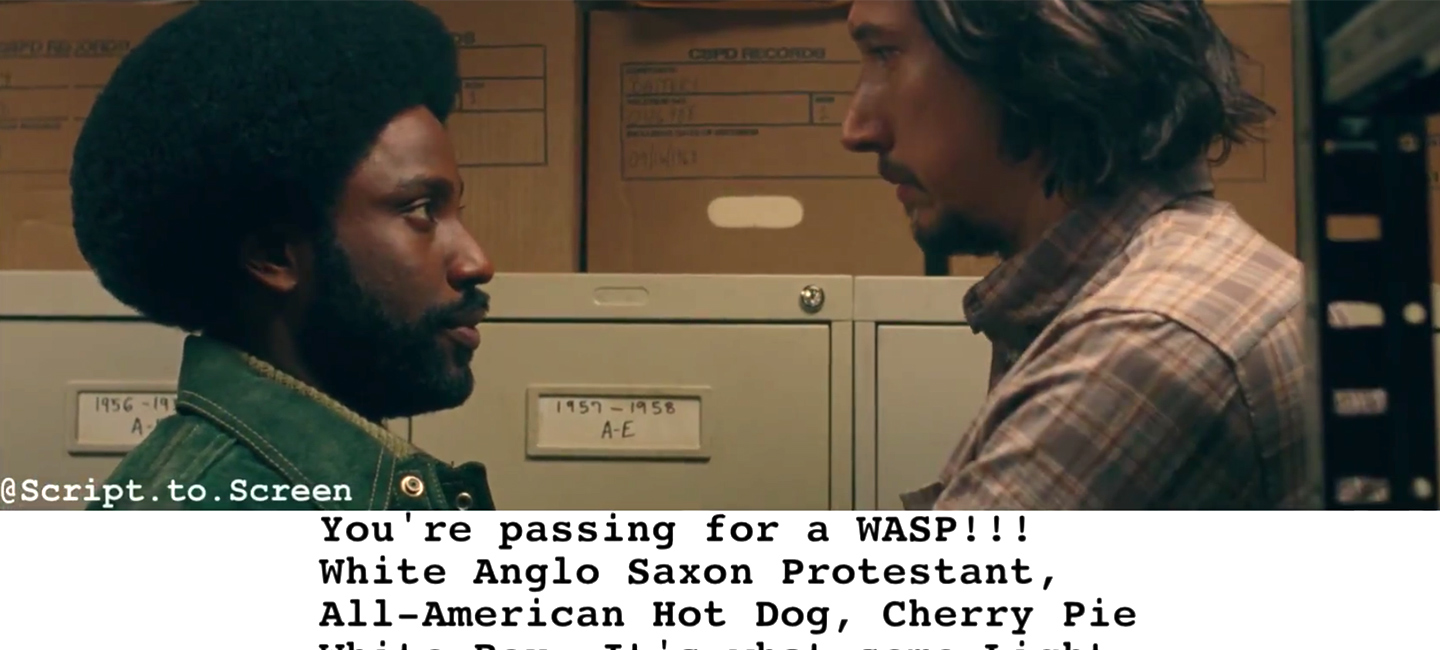 Script to Screen focuses in on a scene from BlacKkKlansman.